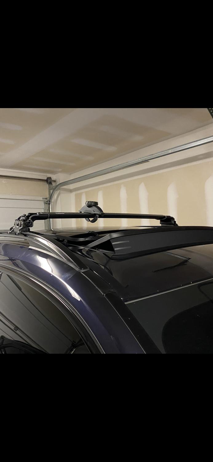These bars are lower than the OEM bars, higher than some of the low profile bars and offer enough clearance to get in my garage and have the sunroof open. I have a Thule Motion XT L box. It’s two Thule Aeroblades 7603 in black (large) with kit 184023. https://www.rei.com/product/892315/t...rect-pup=false Attachment 2786386 Attachment 2786387 Attachment 2786388 |